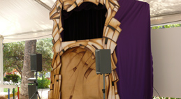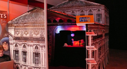 Un teatro en miniatura que recrea un teatro tradicional con todos sus elementos, patio de butacas, escenario, telares, etc...